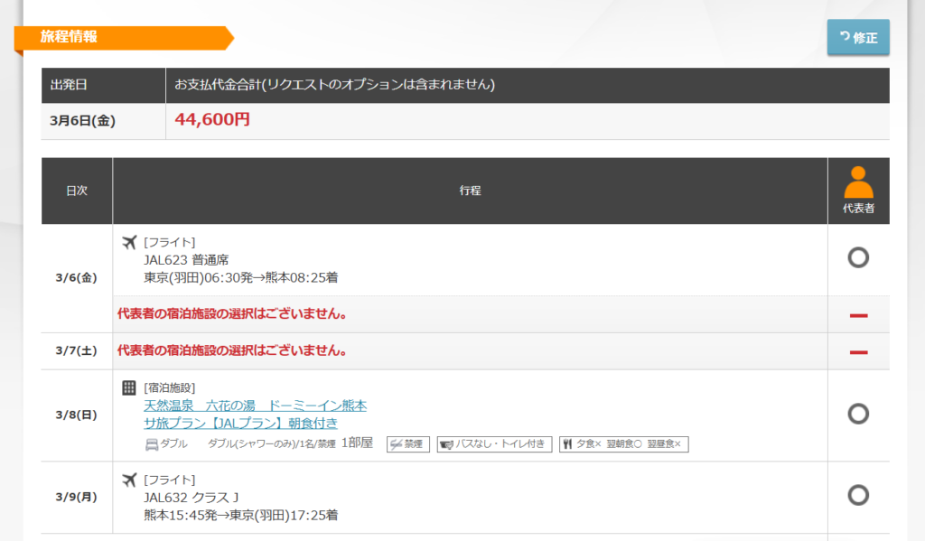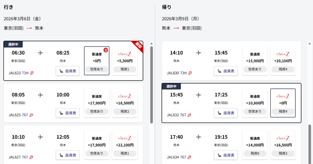 今回は、実際に羽田発→熊本の3泊4日サウナ旅でJALダイナミックパックを利用したので、