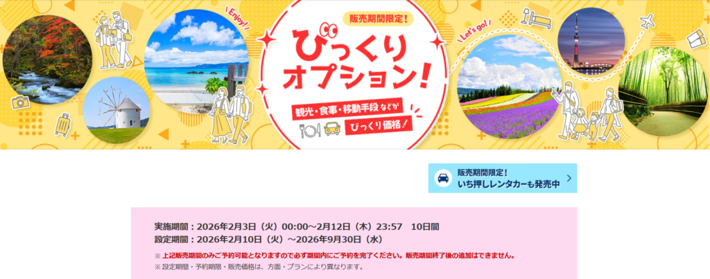 今回の申込期間、旅行期間にはちょうど販売がされていてラッキー!