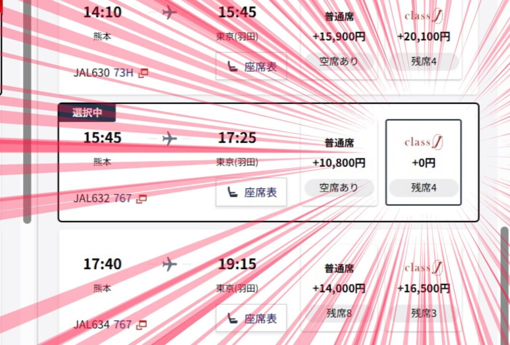 ビジネスシートにあたるclassJが、追加料金なしで選べるししかもなんなら普通席より安いバグ😮